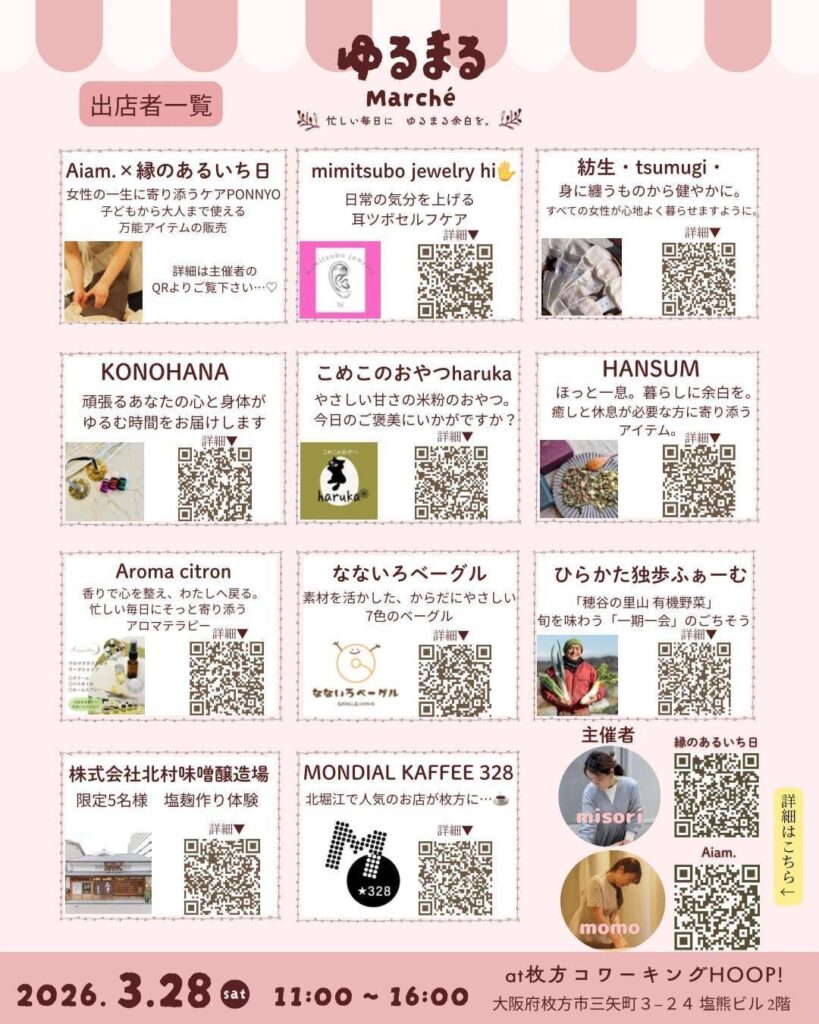 がんばる女性、家族のための ゆるまるMarché ぜひお越しください♡
