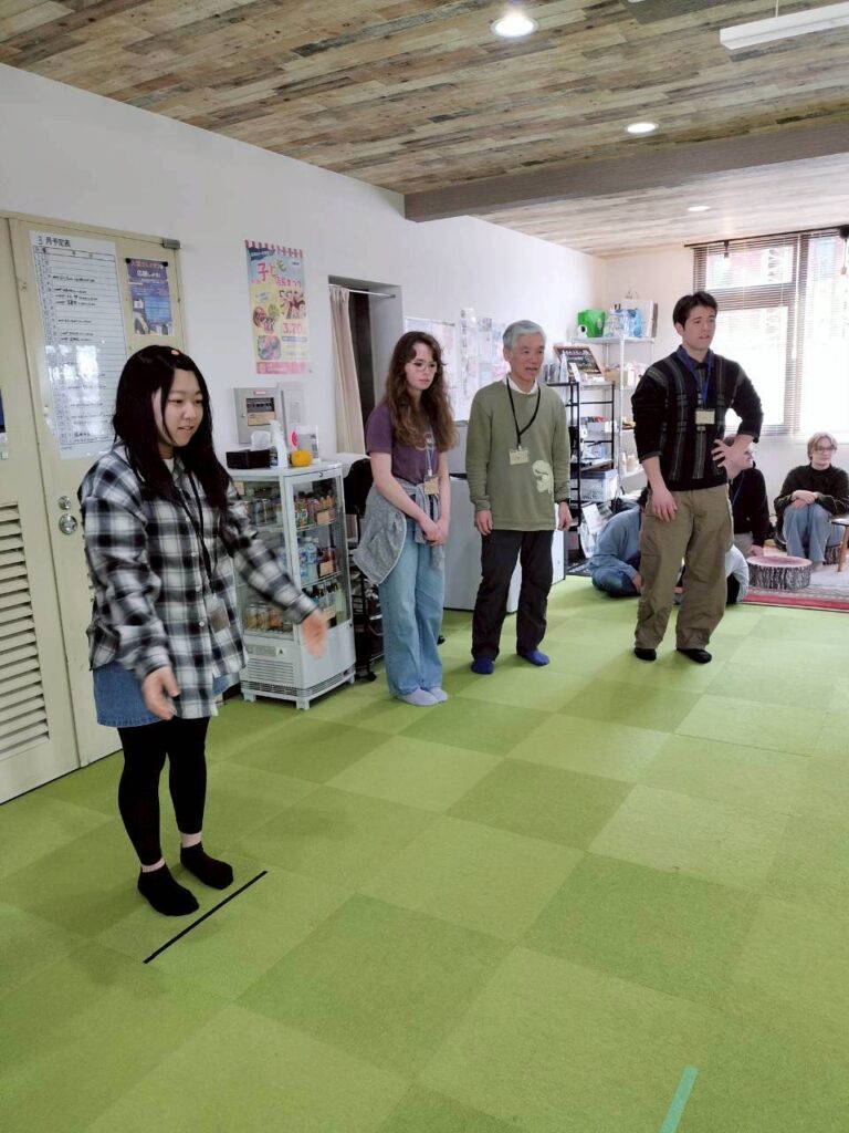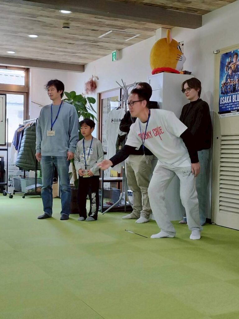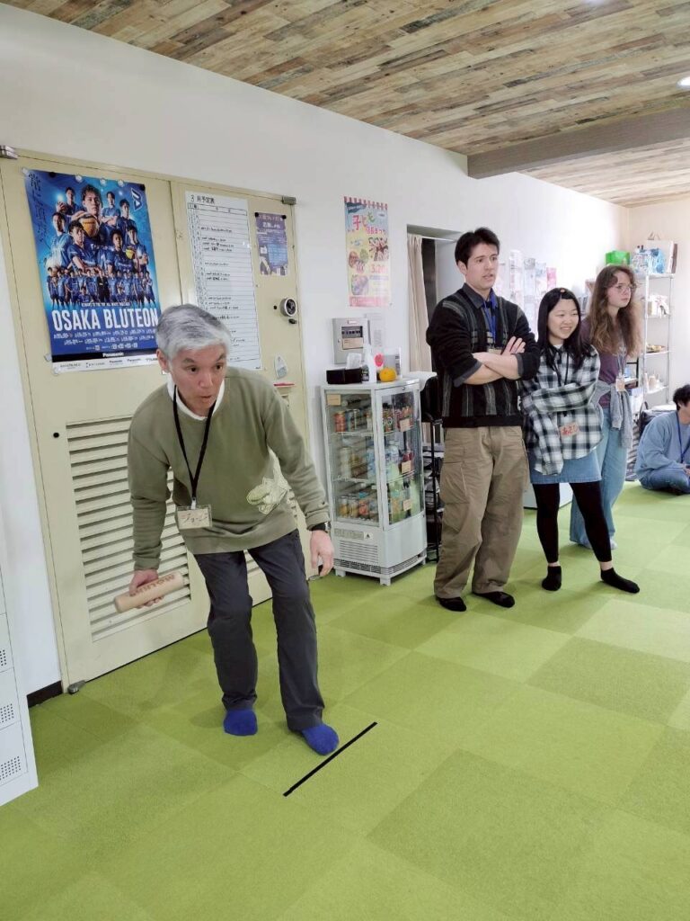 驚くことに、参加者のほとんど全員がモルック「素人」! また関西外大の留学生がたくさん参加してくださり、国際交流の場にもなりました。最初に簡単なルール説明をして、さっそくプレイ開始です。