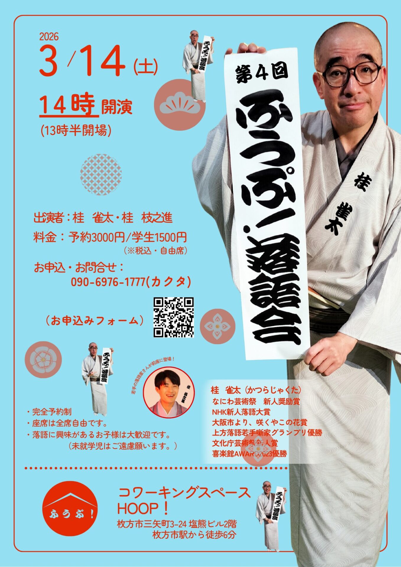 - 3/14(土)「第4回 ふうぷ!落語会」開催のお知らせ