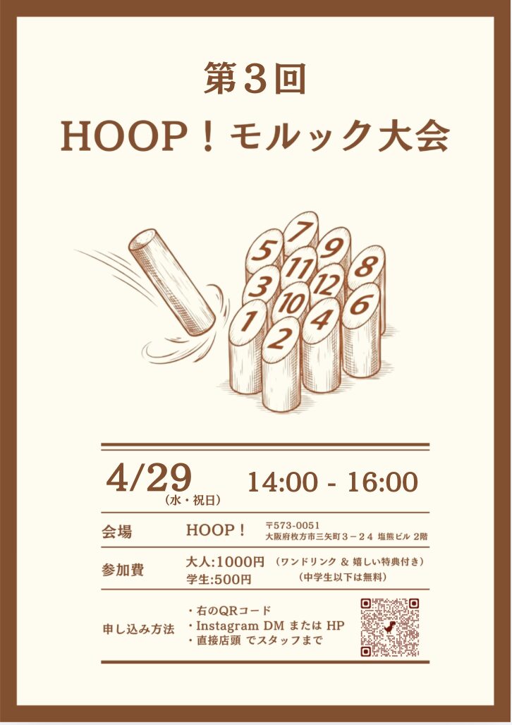 - 3/20(金・祝日)第二回モルック大会開催決定!!